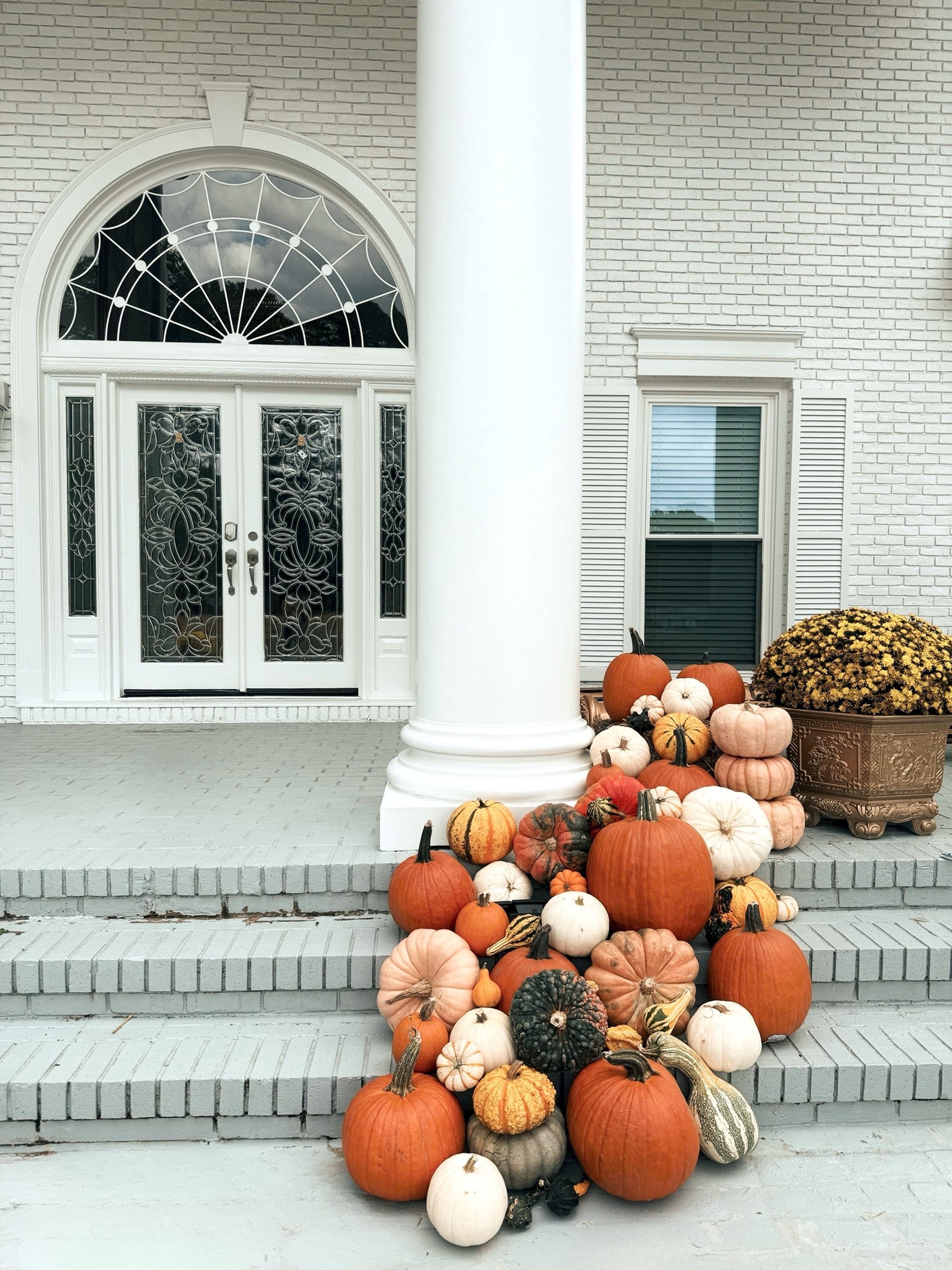 Our Premium Package turns your front porch into a photoshoot-worthy fall showcase. This deluxe setup features premium specialty pumpkins, abundant mums, layered hay bales, and custom-styled arrangements designed to match your home’s personality. Perfect for large porches.